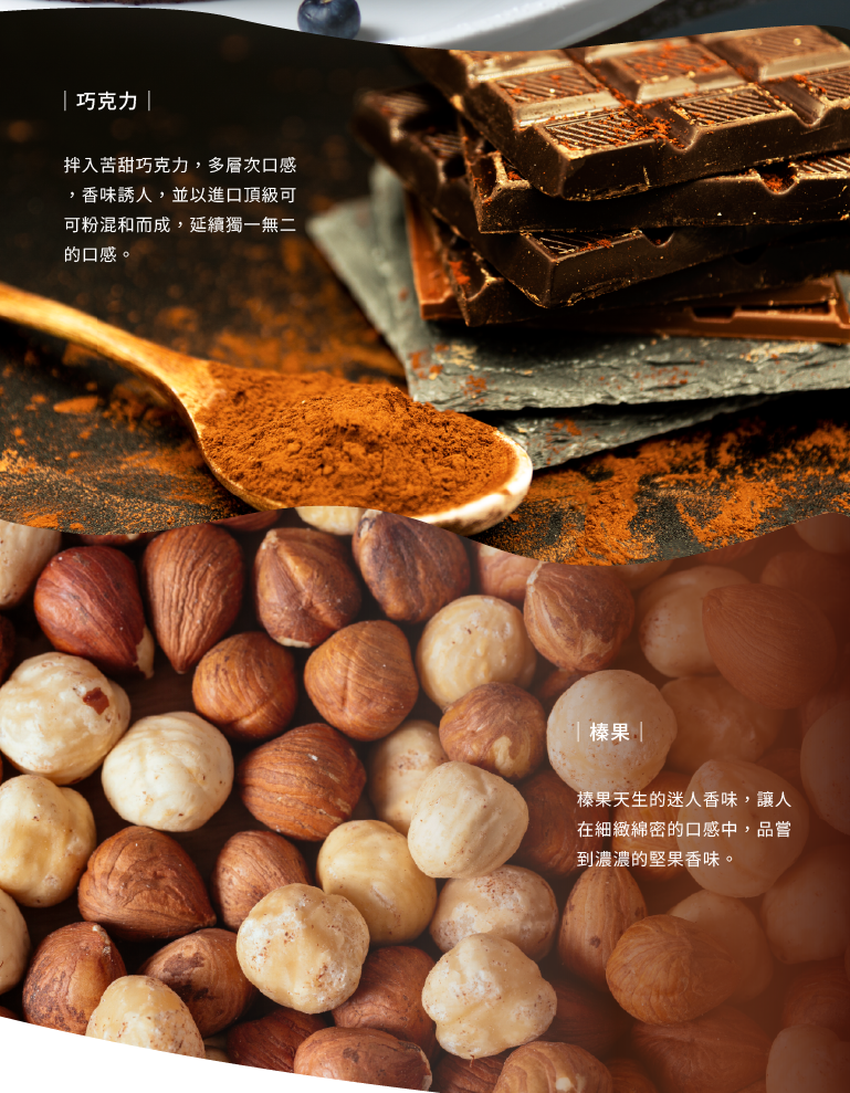 以法國奶油及瑞士巧克力調和濃郁巧克力,