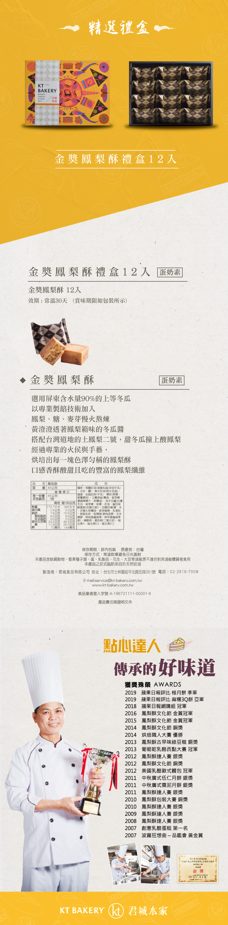 ■ 金獎鳳梨酥x12 【 產品訂購注意事項 】◎ 官網預訂滿$4000免運費,未滿運費$210◎ 官網訂購中秋禮盒,接單後5-7日排單出貨,不接受急單訂購◎ 若有指定到貨日,請於下單後備註欄註明,中秋繁盛期物流可能有延遲到貨情形發生◎ 合作物流週日無配送服務,無法指定週日到貨